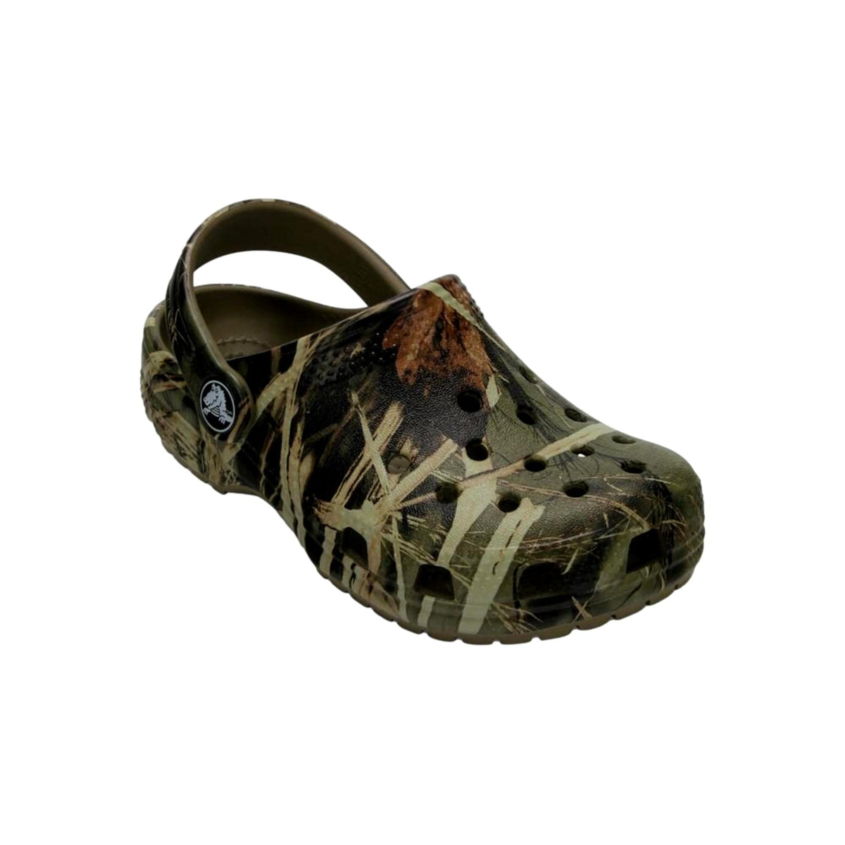 The Crocs Classic Realtree Clog combines legendary Crocs comfort with an outdoors-inspired Realtree® camouflage print. Built from lightweight Croslite™ material, it provides all-day cushioning, ventilation ports for breathability, and water-friendly construction. The pivoting heel strap secures the fit, while the textured outsole offers reliable traction. Ideal for outdoor adventures, casual wear, or relaxing off-duty comfort.