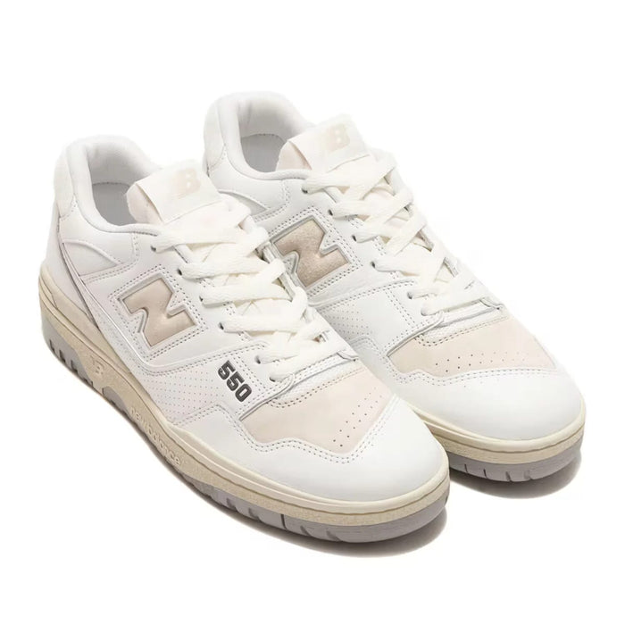 The 'New Balance 550' revives a late-’80s basketball classic with a sleek, low-cut silhouette crafted from premium leather and synthetic overlays. Its perforated panels enhance breathability, while a cushioned midsole provides comfort for all-day wear. A durable rubber outsole with a heritage court tread pattern ensures reliable traction, blending retro sport style with modern street versatility for a timeless everyday sneaker.